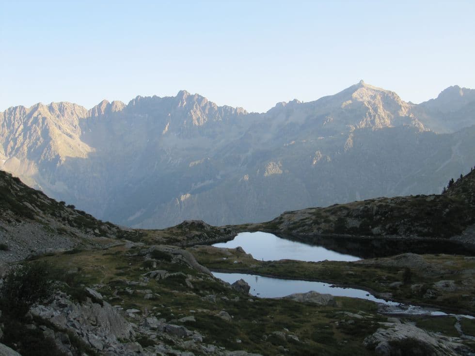 Le sentier en lacets nous mène au premier petit lac de Pétarel en 1H de plus, encore quelques pas et les plus grands suivent. Il se fait tard et nous décidons de poser la tente au bord de ce magnifique lac. Nous avons pu bénéficier d'un soir extraordinaire et nous en avons pris plein les yeux.