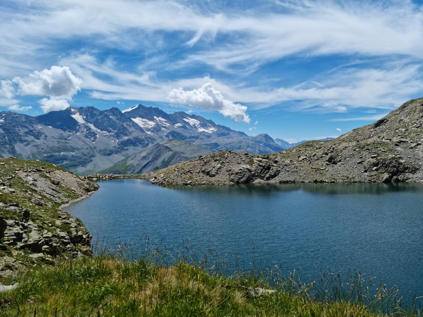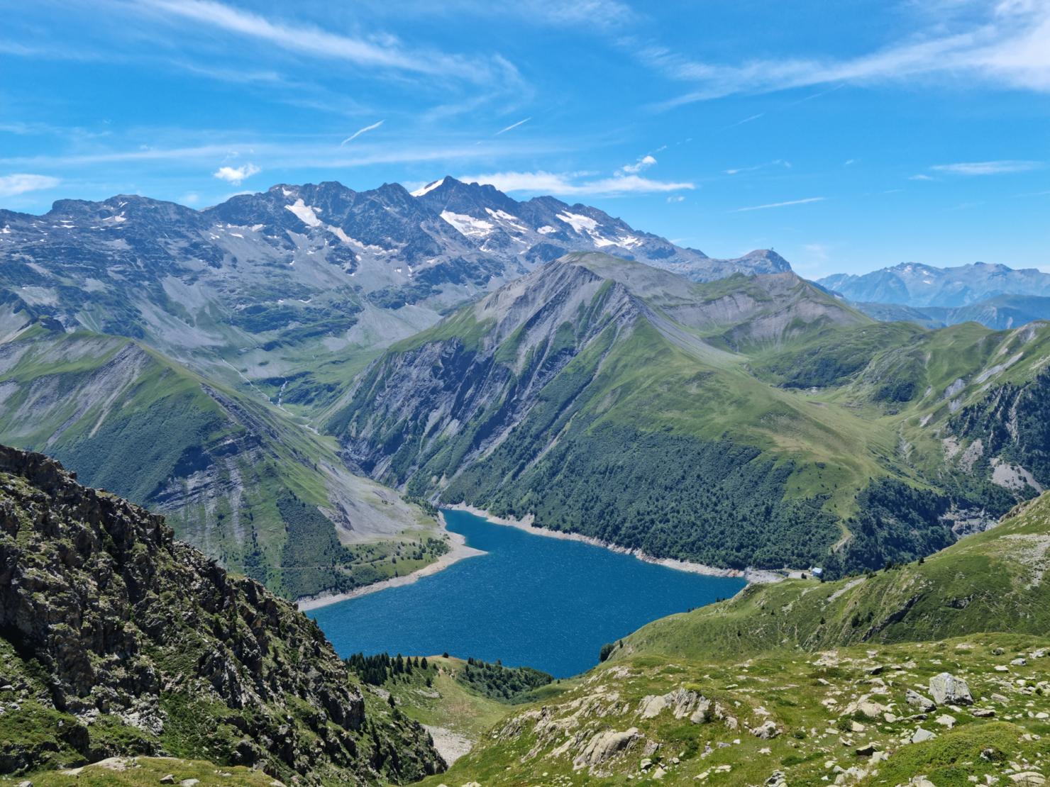 Il effectue une longue traversée au dessus du Lac de Grand Maison, puis après une montée un peu plus raide, franchit une brèche. Légère redescente pour remonter sur le versant d'en face, puis bientôt, la trace se perd. Continuez votre cheminement en suivant les cairns jusqu'au magnifique Lac de L’Âne (2417 M).