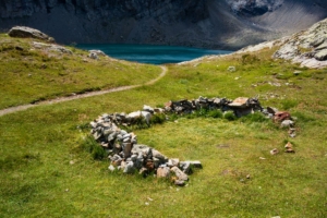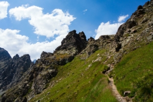 Suivre cette piste qui se transforme en sentier, puis contourne un ressaut rocheux par le gauche et la pente devient plus sévère. Le sentier s'élève alors en lacets pour arriver finalement au bord du Lac de l'Eychauda (2514 m).