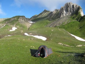 On arrive au Col de Forclaz pour redescendre dans un petit vallon pour traverser le ruisseau, pour remonter ensuite et trouver le Lac Esola sur notre droite, un magnifique lac.