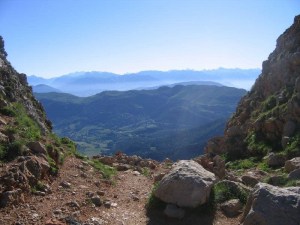Après quelques dizaines de minutes, les arbres se font rares et on sort sur un paysage herbeux et caillouteux.