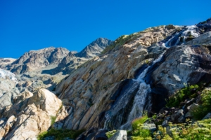 Il est possible de continuer le sentier derrière le Refuge (marqué itinéraire de grande montagne) pour approcher au plus près le Glacier et le Refuge des Ecrins. On peut monter jusqu'à environ 3000 mètres. Sur la trace GPS je me suis arrêté à environ 2800 mètres. Le sentier n'est pas bien plus difficile que la première partie.