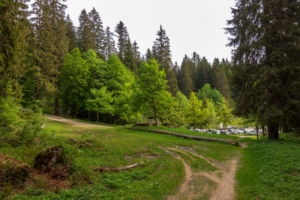 Continuer la descente, puis au niveau d'une piste prendre sur la droite pour retrouver plus loin l'itinéraire de montée et retourner jusqu'au parking.
