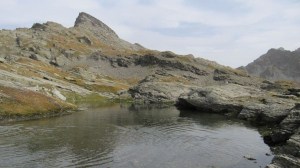 Continuer à droite en traversée sous la Pointe des Couloureuses pour atteindre un premier lac. L'objectif du jour est droit devant nous ! Encore un petit effort et on arrive enfin au Passage de la Louie Blanche (2524 m) et un dernier lac.