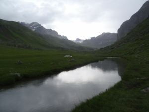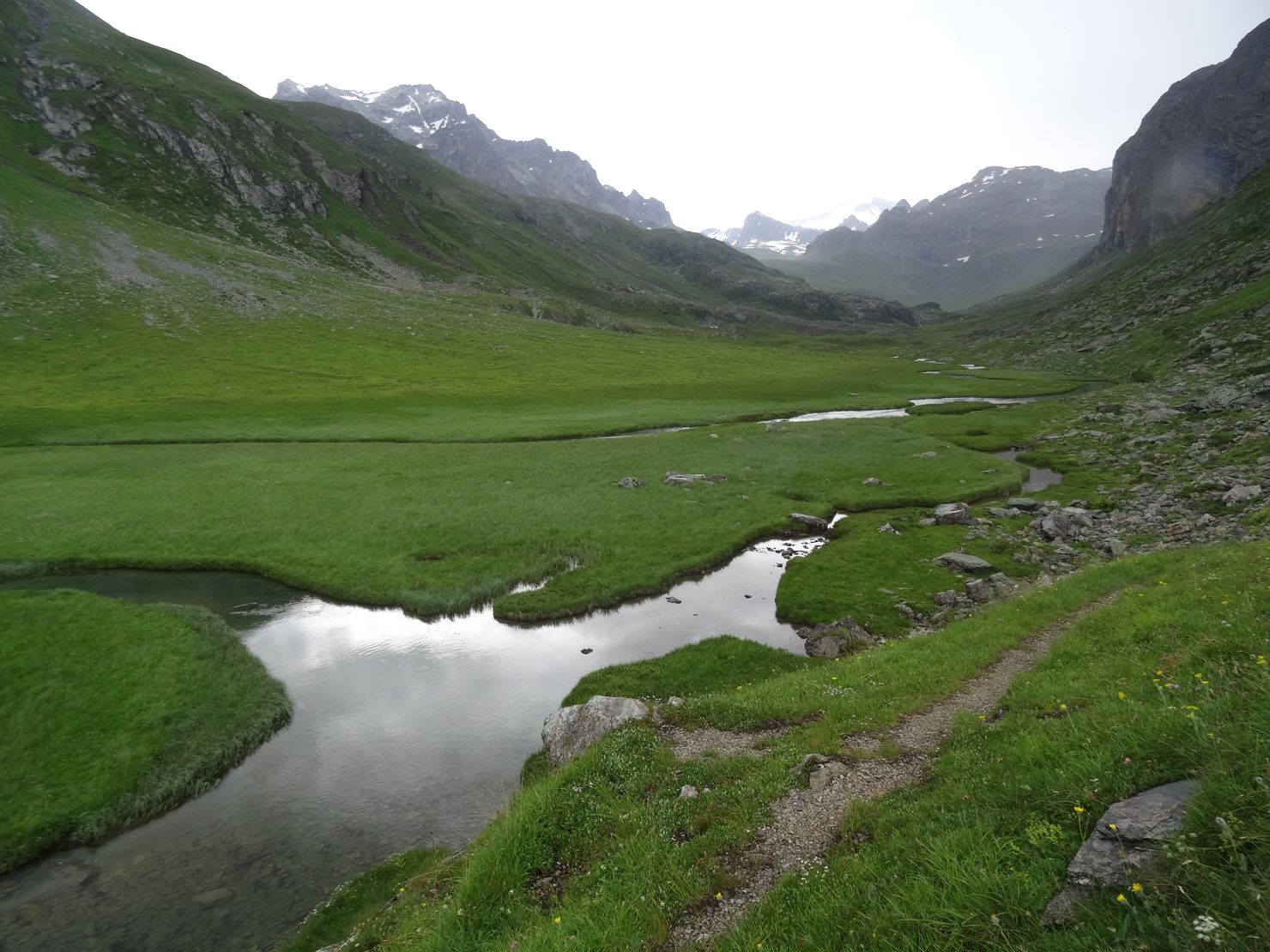 Le temps se gâte sérieusement, on croise beaucoup de touristes qui redescendent. A mi-chemin avec le lac, l'orage éclate, c'est impressionnant mais on ne craint pas grand chose, c'est surtout pénible car ça fait 3 jours qu'on se prend la pluie. On cherche un bivouac mais plus on avance plus l'envie d'aller dormir au Refuge d'Entre le lac se fait ressentir. Finalement, vu que l'on ne trouve pas de spot à notre goût, que l'on a froid, que notre moral est un peu en baisse, et qu'on a envie d'être au chaud on se décide pour le refuge. Il est à 10 minutes après le début du lac. C'est un peu la galère pour y aller, il y a déjà beaucoup d'eau sur le sentier et les pieds sont instables sur les rochers.